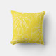 White Tropical Leaf Motif On Sunny Yellow Cushion