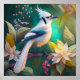 White Tufted Teal Wing Jay Fantasy Bird Poster