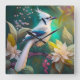 White Tufted Teal Wing Jay Fantasy Bird Square Wall Clock