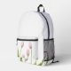 Carry your essentials in style with this white tulip flower backpack. Featuring a delicate tulip floral design on a crisp white background, this backpack is perfect for school, travel, or everyday use. Made with durable materials, it offers spacious compartments, comfortable padded straps, and a sleek modern look. Add a touch of elegance to your outfit while keeping your belongings organised and secure.