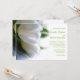 Formal white wedding party invitation with tulips photograph. Reception details printed on the back.