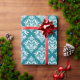 Elegant white vintage floral damask seamless pattern over turquoise blue background you can change.