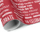 White typography spells out various congratulatory messages on this fun wrapping paper. The text is placed on a bright red background. One line is a template so you may change it to personalise the paper with the recipient's name, if you'd like. Perfect for graduations or other special occasions.
