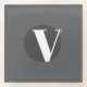 White typography custom initial grey glass coaster
