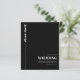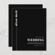 This black BUDGET wedding invitation is a perfect blend of modern and minimalist design. The white chic typography adds a touch of elegance to the overall look. The spacious layout and clean aesthetic make it visually appealing. On a black background, a white vertical line on the left side creates an interesting visual element. The couple's names are cleverly incorporated, extending upwards, adding a personalised touch. With minimal text, the invitation focuses on the bold, white word 'WEDDING' and essential details, making it easy to read and understand. To make RSVP convenient, the back of the invitation includes a QR code for online response.