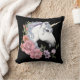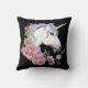 White Unicorn Flowers Pink Black Cushion