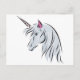 white unicorn head postcard