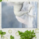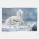 Raindrops are Unicorns whispering - a white Unicorn wading in the water - the sea is very rough and a storm is approaching