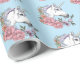 White Unicorn Pink Flowers Blue Wrapping Paper