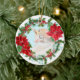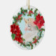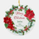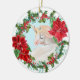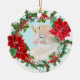 White Unicorn Poinsettia Holly Wreath Ceramic Ornament