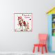 Pretty white Unicorn has a red horn, red saddle and roses in her mane and satin ribbon around her neck. Great poster for your little girls room. Personalise by adding your Child's name.
