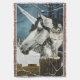 An American Curl tabby cat on a fence with a white Unicorn in behind is a winter day.