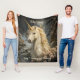 White Unicorn Winter Castle Fairytale Snowy Pines Fleece Blanket
