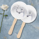 These fans were exactly as pictured. The quality is great. Perfect favor for a wedding!...I will make assembly a little easier by using a hot glue gun and finish them off with a ribbon. Beautifully printed. Crisp and clear text.