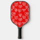 This pickleball paddle has a mid-century modern Valentine’s design of scattered white heart mazes on a field of red.