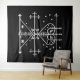 Tapestry with a white veve of Maman Brigitte on a black background. Customisable. Maman Brigitte is the loa of life, death, justice, and women.