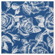 White Vintage Roses Pattern Custom Blue Background Fabric
