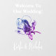 A window cling in elegant white text with floral artwork in violet hues, conveying your wedding welcome message,. Message MineByDesign for custom designs!