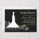 White bride's wedding dress, flower and swirls on a black background Bridal Shower Invitation. The matching RSVP and Thank you card are shown below: