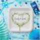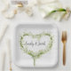 White lily bridal heart with bride and groom names on whitewashed wood.