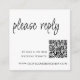 Make your wedding RSVP process seamless, with our RSVP QR code enclosure card. This compact customisable card features modern black lettering with a clean white background. The front includes a customisable text area and a space to generate a unique QR code for guests to easily RSVP through their smartphones. Go the the "personalise" option, add your wedding website URL to the area provided, and a QR code will generate on the design just for you. On the reverse side, add a personal touch with a photo. Make your special day even more memorable with this chic and functional wedding enclosure card.