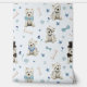 The design features white West Highland Terriers with various accessories in blue and black such as top hats, glasses, neckties, scarves and bones on a light blue background.