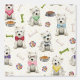 The design features white West Highland Terriers with various accessories in blue, yellow, red, pink, purple such as glasses, neckties, scarves, dog toys, dog food bowls and bones. Pawfect for any Westie lover.