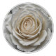 A close-up view of a white wet rose reveals its captivating beauty, with raindrops clinging to the petals, enhancing its freshness and purity. The dewy effect adds a sense of tranquillity and elegance to the delicate flower.