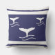 part of the ocean nautical themed decor white whale tails on navy blue pillow on one side and navy on back. nautical designs perfect for coastal living, lake decor ,river decor, nautical, and more...