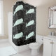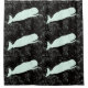 white whales on black pattern shower curtain