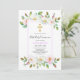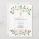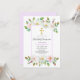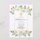 White and pink wild dog roses lavender floral girl First Holy Communion invitation. This design showcases garlands of watercolor white and blush pink dog roses with green leaves on the upper and bottom parts and your text in a lavender purple frame. The back is of pale lavender colour.