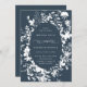White Wildflower Silhouette Wedding Navy Blue Invitation