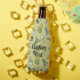 White wine. Bottle, glass, corkscrew and grapes. Seamless pattern. Custom background colour. Custom text.