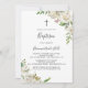 This white winter peony floral baptism invitation is perfect for a modern baby baptism or christening. The design features beautiful hand-drawn white peonies bunched into neat bouquets with burgundy buds and green leaves.