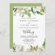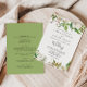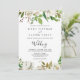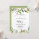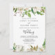 This white winter peony floral front and back wedding invitation is perfect for an elegant wedding. The design features beautiful hand-drawn white peonies bunched into neat bouquets with burgundy buds and green leaves