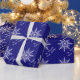 White Winter Snowflakes on Blue Holiday Wrapping Paper