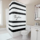 White with Black Stripe Custom Name Simply Elegant Shower Curtain