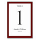 A classic burgundy and white wedding table number card that can be customised with any table number. The graphics appear on both sides of this card.
