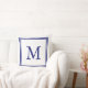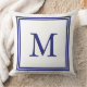 Solid white square pillow with a nautical blue double frame on the front and back. Personalise this classic pillow with your choice of initial.