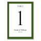 White With Pine Forest Green Border Wedding Table Number