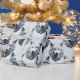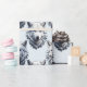 White Snow Wolf Head Seamless Repeat Pattern Design on blue tint white Background