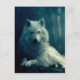 White wolf in the night forest postcard