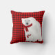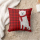 A white wolf with matching red buffalo plaid scarf on one side of the pillow. Other side has a polar bear with cub and matching plaid scarfs.