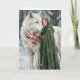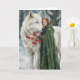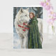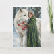 White Wolf Redhead Druid Winter Berries Fantasy Ar Card