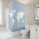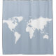 white world map on pale blue shower curtain
