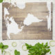 White world map silhouette over a rustic light barn wood planks background print. Great for world travelers, lovers of maps, or cartography!