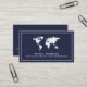 A graphic map of the world on a simple and stylish dark blue business card... perferct for a travel agent or any other international profession