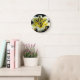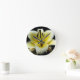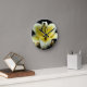 White Yellow Blossom on Black Background Floral Round Clock