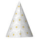 Party hat design features an original marker illustration of a yellow and white daisy flower blossom. Great for a garden party, bridal shower, wedding or engagement.