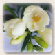white yellow freesia coaster
